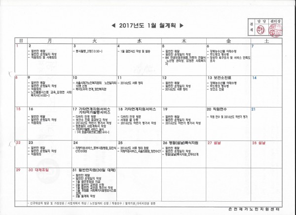 2017년 1월 월계획 페이지 정보 작성자 은천노인복지회 작성일17-02-01 17:46 조회73,776회 댓글0건 관련링크 이전글 다음글 목록 답변 본문 은천재가노인지원센터 2017년 1월 월계획 이전글 다음글 목록 답변
