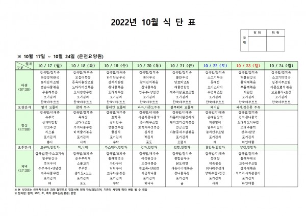 10월 셋째주 식단표 페이지 정보 작성자 은천노인복지회 작성일22-10-13 17:30 조회86,254회 댓글0건 관련링크 이전글 다음글 목록 답변 본문 . 이전글 다음글 목록 답변