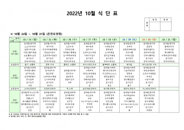 10월 넷째주 식단표 페이지 정보 작성자 은천노인복지회 작성일22-10-20 15:06 조회85,289회 댓글0건 관련링크 이전글 다음글 목록 답변 본문 . 이전글 다음글 목록 답변