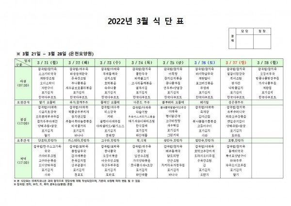 3월 넷째주 식단표 페이지 정보 작성자 은천노인복지회 작성일22-03-17 17:31 조회105,118회 댓글0건 관련링크 이전글 다음글 목록 답변 본문 . 이전글 다음글 목록 답변