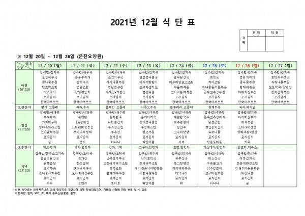 12월 넷째주 식단표 페이지 정보 작성자 은천노인복지회 작성일21-12-16 17:24 조회113,926회 댓글0건 관련링크 이전글 다음글 목록 답변 본문 . 이전글 다음글 목록 답변