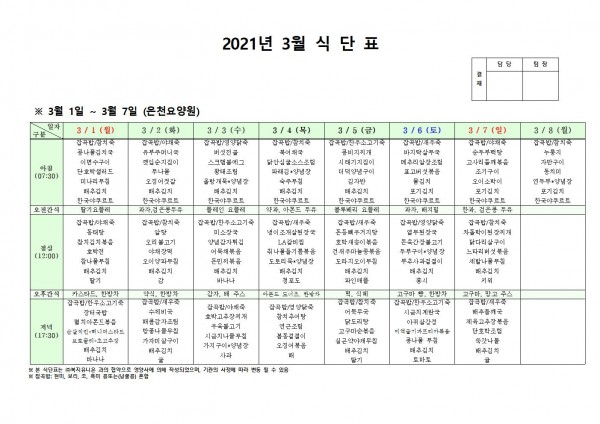 3월 첫째주 식단표 페이지 정보 작성자 은천노인복지회 작성일21-02-25 16:45 조회137,089회 댓글0건 관련링크 이전글 다음글 목록 답변 본문 식단표 [이 게시물은 은천노인복지회님에 의해 2021-03-12 17:18:24 공지사항에서 이동 됨] 이전글 다음글 목록 답변