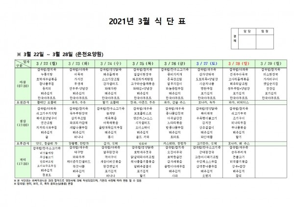 3월 넷째주 식단표 페이지 정보 작성자 은천노인복지회 작성일21-03-18 17:41 조회135,709회 댓글0건 관련링크 이전글 다음글 목록 답변 본문 3월 넷째주 식단표 이전글 다음글 목록 답변