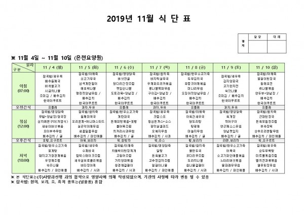 11월 첫째주 식단표 페이지 정보 작성자 은천노인복지회 작성일19-11-12 14:17 조회184,452회 댓글0건 관련링크 이전글 다음글 목록 답변 본문 11월 첫째주 식단표 이전글 다음글 목록 답변