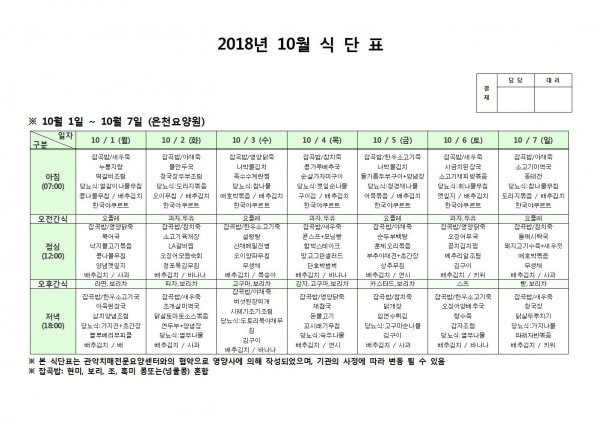 10월 첫째주 식단표 페이지 정보 작성자 은천노인복지회 작성일18-10-08 11:06 조회196,824회 댓글0건 관련링크 이전글 다음글 목록 답변 본문 10월 첫째주 식단표 이전글 다음글 목록 답변