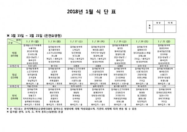 1월 셋째주 식단표 페이지 정보 작성자 은천노인복지회 작성일18-01-17 15:16 조회186,177회 댓글0건 관련링크 이전글 다음글 목록 답변 본문 1월 셋째주 식단표 이전글 다음글 목록 답변