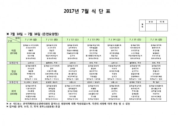 7월 둘째주 식단표 페이지 정보 작성자 은천노인복지회 작성일17-07-11 09:20 조회172,767회 댓글0건 관련링크 이전글 다음글 목록 답변 본문 7월 둘째주 식단표 이전글 다음글 목록 답변