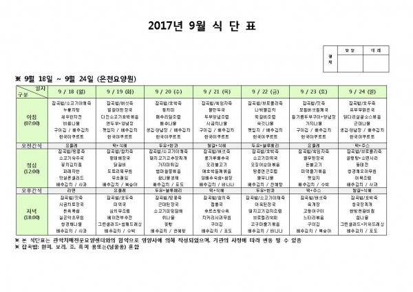 9월 셋째주 식단표 페이지 정보 작성자 은천노인복지회 작성일17-09-18 11:02 조회176,789회 댓글0건 관련링크 이전글 다음글 목록 답변 본문 9월 셋째주 식단표 이전글 다음글 목록 답변