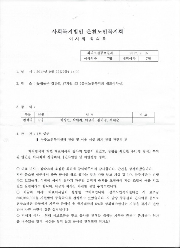 이사회의록 공개 페이지 정보 작성자 은천노인복지회 작성일17-10-16 14:27 조회35,456회 댓글0건 관련링크 목록 본문 9월 22일 상주노인복지센터 전출의 건 이사회의록을 공개합니다. 목록