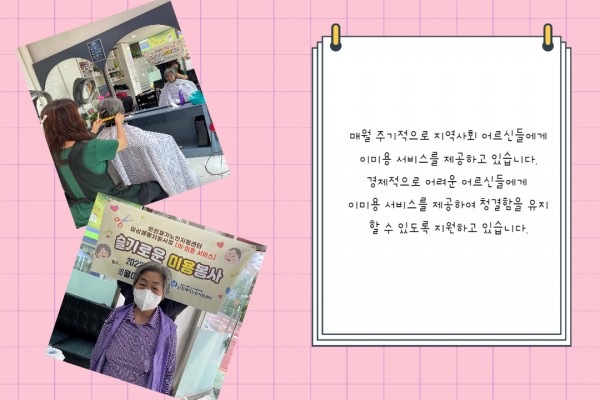 [재가노인지원서비스] 이미용 서비스 페이지 정보 작성자 은천노인복지회 작성일22-07-06 13:27 조회16,201회 댓글0건 관련링크 이전글 다음글 목록 답변 본문 6월 이미용 서비스 이전글 다음글 목록 답변